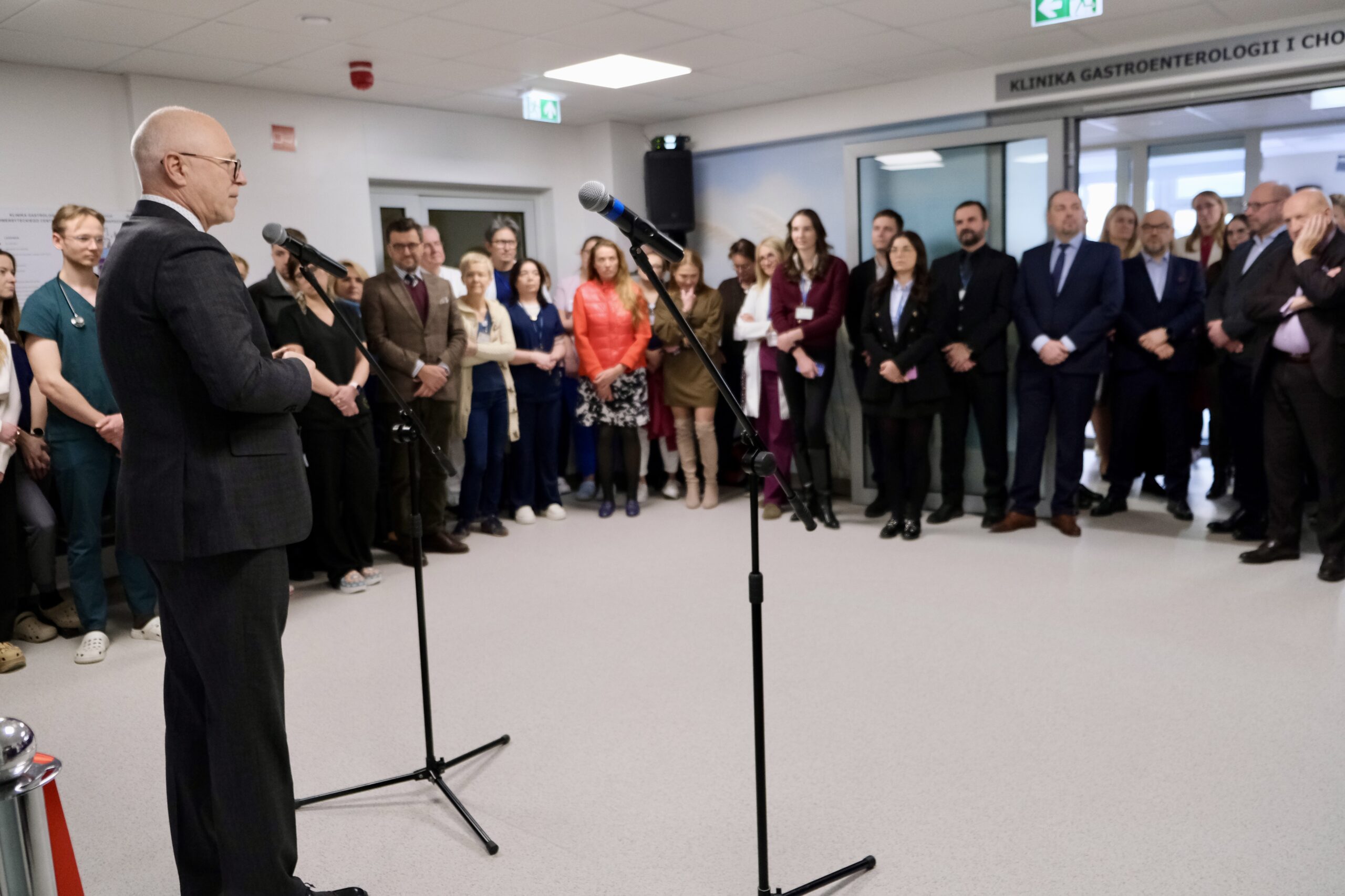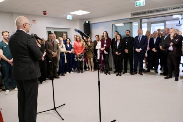 Oddział Kliniki Gastroenterologii i Chorób Wewnętrznych rocznie pomaga 4000 pacjentów. Profesor Adam Przybyłkowski, kierownik Kliniki, podkreślił podczas uroczystości, że wyróżnia się ona na tle innych ośrodków bogactwem możliwości. „ W Klinice robimy wszystko co współczesna gastroenterologia ma do zaproponowania, czyli wykonujemy pełne spektrum wszystkich dostępnych współcześnie procedur endoskopowych w tym najtrudniejszych i najbardziej zaawansowanych technologicznie zabiegów”. Dzięki przeprowadzonej modernizacji i zaopatrzeniu kliniki w nowy sprzęt, w tym np. endoskopy czy wyposażenie myjni endoskopowej, jakość leczenia pacjentów i ich bezpieczeństwo będą jeszcze wyższe! Jak zaznaczył Rektor WUM „ modernizacja oddziału oznacza po pierwsze poprawę warunków pracy, po drugie – coraz lepszą jakość wykonywania świadczeń medycznych, po trzecie – poprawę warunków kształcenia studentów, bo to niezwykle istotne, aby uczyli się oni nowoczesnych procedur w infrastrukturze z XXI wieku.”